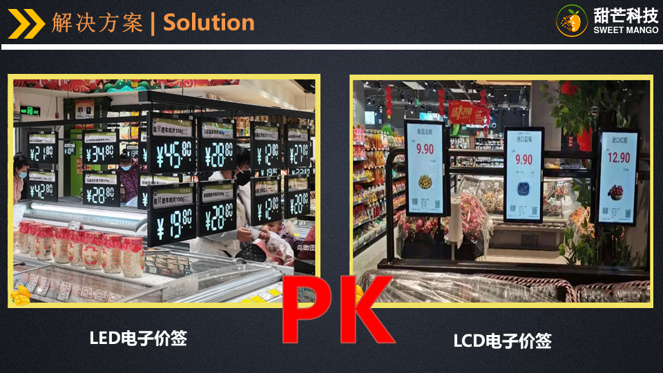 甜芒科技LED电子价签对比市面上LCD电子价签的优势如下: